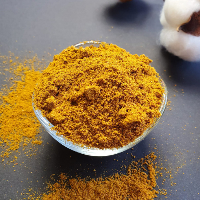 Состав: куркума, кориандр, пажитник, имбирь, тмин, перец душистый, перец Чили, перец черный.