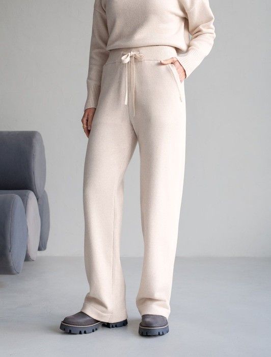 Состав: 52%ПАН (акрил) 33%ПЭ 8%ПУ 7%Кашемир Плотность: 7 GG Параметры модели на первом фото: Рост 172, бюст 88, талия 64, бедра 88Брюки прямого силуэта выполнены из мягкой пряжи с кашемиром. Нежная пряжа приятно ощущается на теле, сохраняя комфортное тепло. Не колется и не перегревает. Пояс регулируется вязаным шнуром, позволяя носить изделие на талии или чуть ниже. Модель сочетается с любым верхом из коллекции с кашемиром.