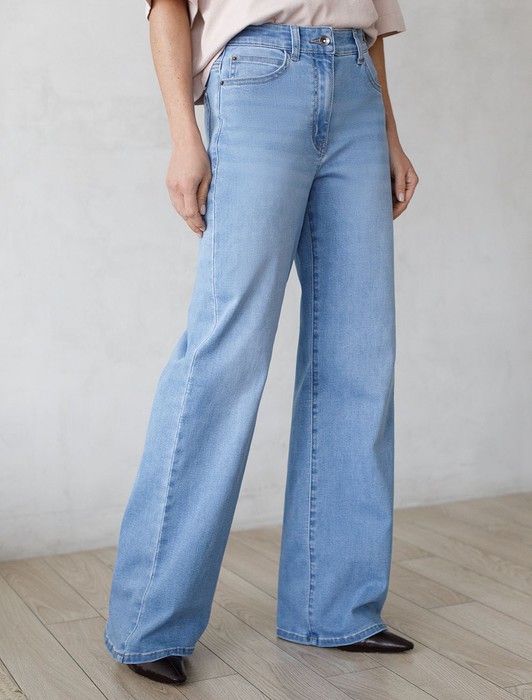 Совместные покупки Омск Женская одежда Футболки — Прямые джинсы с декоративной стиркой из эластичного облегченного денима