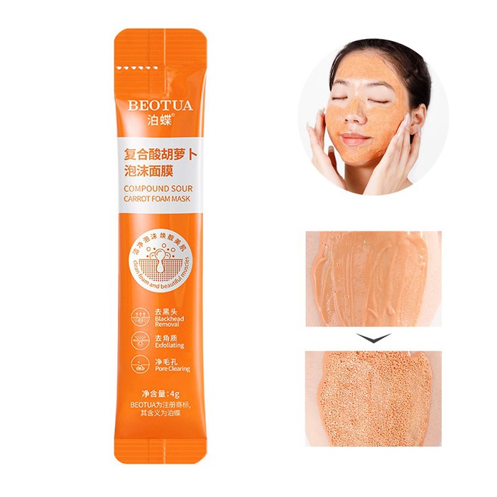 Совместные покупки Омск Косметика и парфюмерия Прочий макияж — Пузырьковая маска для лица с экстрактом МОРКОВИ Beotua, 1 ШТУКА * 4 мл.