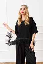 Горловина: углублена и расширена, обработана притачной узкой обтачкой со сгибом, эластичная.