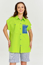 Блуза из хлопкового ришелье. Детали: полуприлегающий силуэт, вырез переда и спинки фигурной формы, спинка со средним швом и потайной застежкой-молнией, укороченные рукава, блуза на подкладке