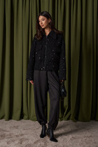 Детали: притачной пояс со шлевками, складки, застежка на молнию и пуговицу, боковые карманы. Задние части брюк с вытачками и имитацией карманов.