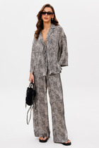 Комплект женский, состоящий из жилета и юбки. Жилетка со средним швом по спинке, переходящим в разрез. Завязывается сзади на пояс. По переду вытачки, переходящие в рельеф. V-образная горловина, фигурный низ, карманы с листочкой, функциональные, застежка на 4 пуговицы. Юбка А-силуэта со средним швом по спинке и переду. В боковых обработаны карманы, пояс на резинке, застежка на молнию и пуговицы.