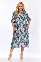 Легкий материл, не сильно мнется. Платье застегивается на пуговицы спереди. Пояс в комплекте.