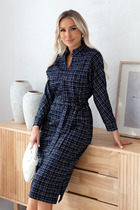 Платье трапециевидного силуэта с втачным рукавом. Спинка декорирована из плиссированной ткани. Рукав прямой. Низ рукава и низ платья оформлен рюшей из плиссированной ткани. Вырез горловины круглый на спинке декорирован завязывающем бантом. Платье выполнено на подкладке. Верх платья из текстиля. Подкладка трикотажная. Длина платья 113 см. Длина рукава 20 см.