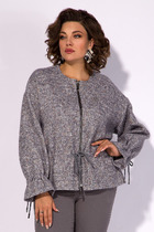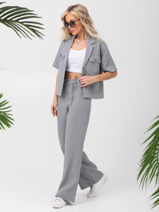 Модель прямого силуэта с центральной застёжкой на петли и пуговицы, без подклада. Воротник пиджачный. Спереди фигурные накладные карманы с клапанами, которые застёгиваются на пуговицу. Сзади кокетка и средний шов. Плечо спущенное. Рукав короткий.