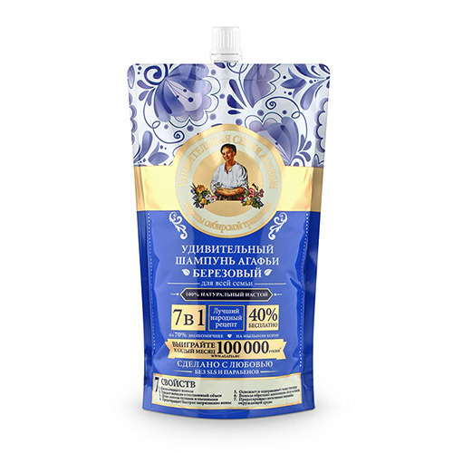 Aqua, Sodium Coco-Sulfate, Cocamidopropyl Betaine, Lauryl Glucoside, Sodium Chloride, Betula Alba Bark Water (настой коры березы), Betula Alba Juice (березовый сок), Silybum Marianum Extract (экстракт расторопши), Saponaria Officinalis Root Extract (экстракт мыльного корня), Althaea Officinalis Extract (экстракт алтея), Spiraea Ulmaria Extract (экстракт таволги), Linum Usitatissimum Seed Oit (масло сибирского льна), Methylchloroisothiazolinone. Methylisothiazolinone, Citric Acid, Parfum.
