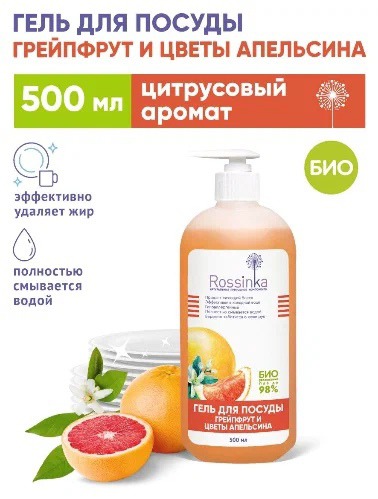 Совместные покупки Омск Хозтовары и личная гигиена Средства для мытья посуды — ROSSINKA Гель для мытья посуды Грейпфрут и цветы Апельсина
