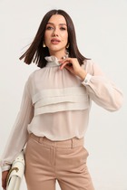 Натуральая  базовая блузочка  с интересным  двухслойным воротичком  со скруглёнными концами.
