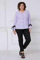 Блузка женская прямого силуэта с рубашечным воротником, с рукавом со сборкой по низу на притачном манжете, с застежкой по переду на петли пуговицы.