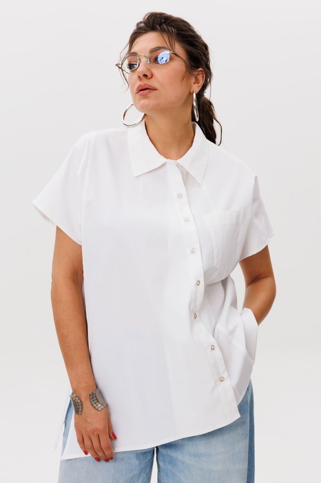 Эта рубашка — воплощение лёгкости и свободы, созданная для тех, кто ценит комфорт и стиль в каждой детали. Её хлопковая ткань словно растворяется в движении, даря непревзойдённое ощущение невесомости. Прямой силуэт с лёгким расширением книзу создаёт элегантную непринуждённость, а асимметричный крой придаёт образу индивидуальность, делая эту модель настоящей изюминкой вашего гардероба.