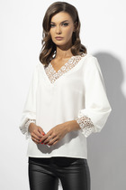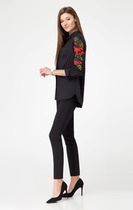 Блуза декорирована россыпью жемчужных бусин по карману.