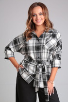 Блуза великолепно сочетается с брюками и юбками из денима, как брюки арт. 6062, представленные на фото.