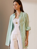 Vilatte Удлиненная блузка с поясом в тонкую полоску из эластичного хлопка D29.30
