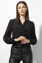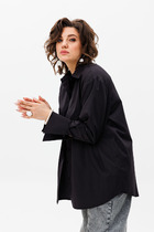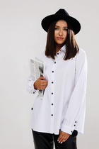 Рубашка (туника) женская из трикотажного полотна «флис» с набивным рисунком «клетка», свободного силуэта, с длинными втачными рукавами напритачных манжетах, стояче-отложным воротником, нагрудным карманом,фигурным низом и центральной бортовой застежкой на петли и пуговицы. Спинка – с отрезной кокеткой и бантовой складкой в центре соединительного шва.