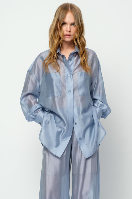 Полупрозрачная оверсайз рубашка из вискозы.