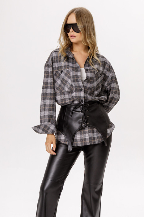Оверсайз рубашка в клетку (приобрести брюки с фото можно по арт. 6522, приобрести баску с фото можно по арт. 6551).