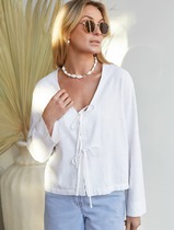 Детали: прямой силуэт, свободный покрой, рубашечный воротник, застежка на петли и пуговицы, перед с накладными карманами, спинка с кокеткой, рукава длинные с манжетами.