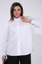 Рубашка женская из гладкокрашеного тканого полотна, свободного покроя, с длинными втачными рукавами, стояче-отложным воротником, фигурной линией низа и центральной бортовой застежкой на обметанные петли и пуговицы. Рукава – с притачными манжетами застегиваются на две обметанные петли и пуговицы.При выборе изделия в белом цвете идеальным решением будет выбор белья нейтральных