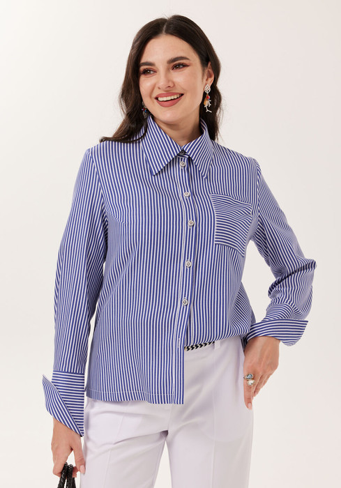 Совместные покупки Омск Женская одежда Блузки, рубашки — Рубашка Твой Имидж 2184 синий в полоску