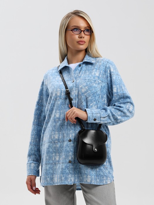 Рубашка (туника) молодежная из трикотажного полотна «флис» с эффектом «варенки», полуприлегающего силуэта, с длинными втачными рукавами на притачных манжетах, стояче-отложным воротником, нагрудным карманом, фигурным низом и центральной бортовой застежкой на петли и пуговицы. Спинка – с отрезной кокеткой и бантовой складкой в центре соединительного шва.