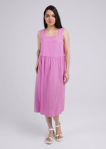 Подобно нераскрывшемуся бутону на тонком стебле, представленный сарафан создаёт неповторимый силуэт женской фигуре. Это достигается благодаря оригинальному крою юбки, а уравновешивает округлые формы низа – прямой и сдержанный лиф. Жатая текстура льна на этой модели, как элемент декора - соединяет воедино силуэтное разнообразие.
