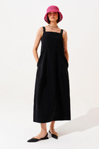 Элегантное длинное платье полуприлегающего силуэта. V-образная горловина по переду и спинке на внутренней обтачке. Тонкие брители с регулируемой высотой.