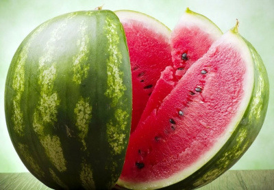 Мякоть ярко-красного цвета, без волокон, хрустящая