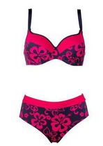 Раздельный купальник из эластичного полотна с формованной чашкой balconette с push-up во всех размерах. На каркасах , с боковыми корсетными вставками. Спереди декоративное переплетение из ткани купальника. Бретели регулируемые. Два варианта ношения бретелей (классический и за шею). Пластиковая застежка. Плавки с завышенной талией. Переднее полотно с подкладом. Подгиб и плоский шов по талии и срезу ножек.