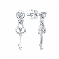 Серьга с фианитом родированная серебро 925*
