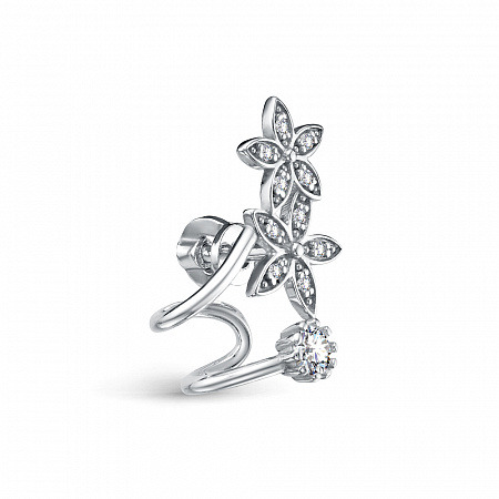 Серьга с фианитом родированная серебро 925*