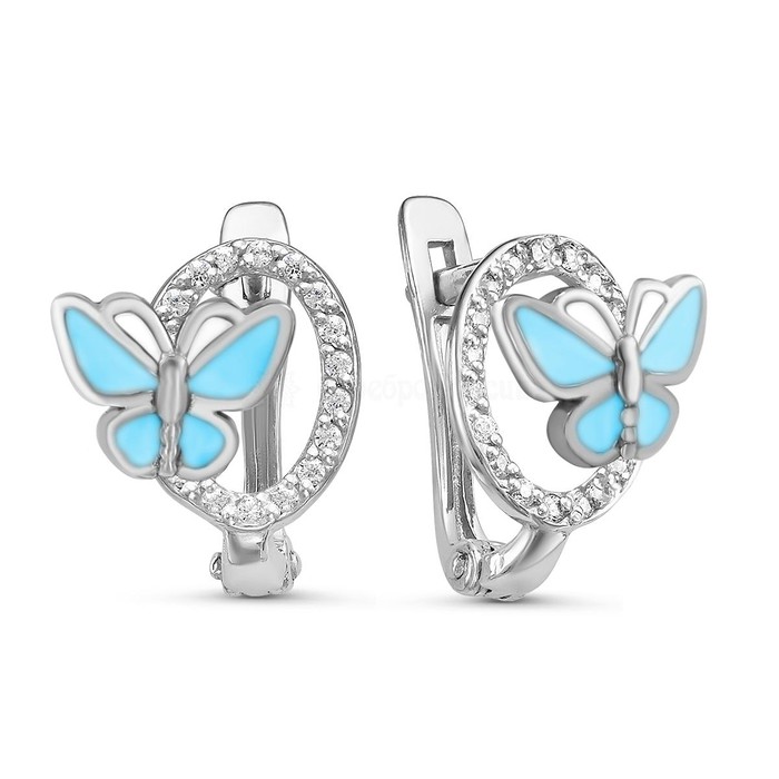 Совместные покупки Омск Детские аксессуары Украшения, бижутерия — Серьги детские из родированного серебра с эмалью и фианитами - Бабочки 925 пробы