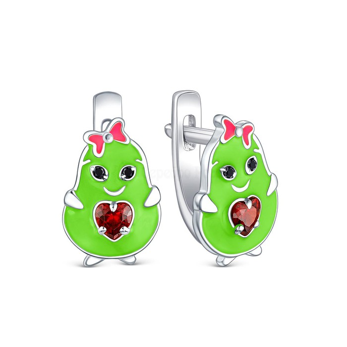 Совместные покупки Омск Детские аксессуары Украшения, бижутерия — Серьги детские из серебра с эмалью и фианитами родированные - Авокадо 925 пробы