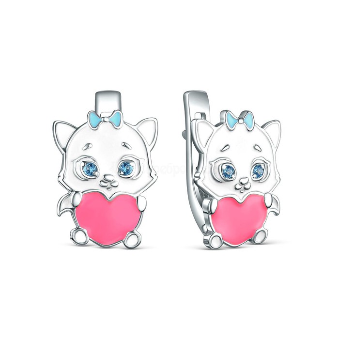 Совместные покупки Омск Детские аксессуары Украшения, бижутерия — Серьги детские из серебра с эмалью и фианитами родированные - Кошечки 925 пробы