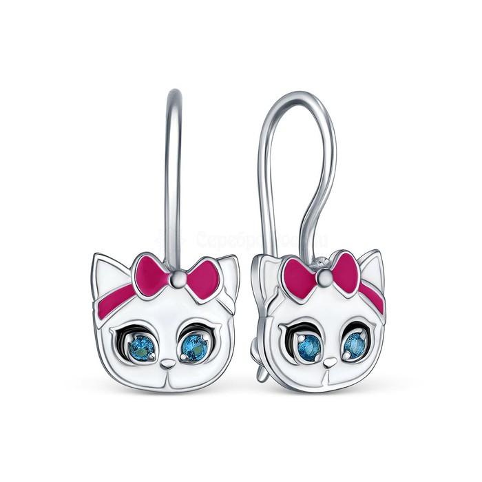 Совместные покупки Омск Детские аксессуары Украшения, бижутерия — Серьги детские из серебра с эмалью и фианитами родированные - Кошки 925 пробы 21