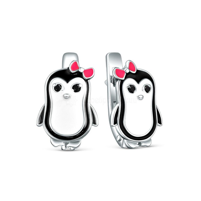 Совместные покупки Омск Детские аксессуары Украшения, бижутерия — Серьги детские из серебра с эмалью и фианитами родированные - Пингвины 925 пробы