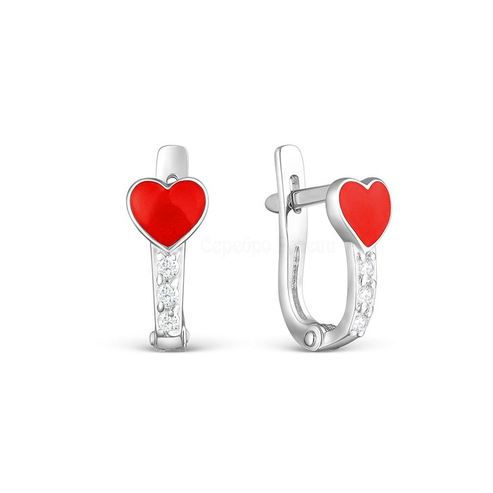 Совместные покупки Омск Детские аксессуары Украшения, бижутерия — Серьги детские из серебра с эмалью и фианитами родированные - Сердечки 925 пробы
