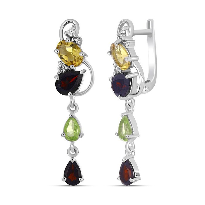 Серьги, арт.658106 Серебро Серебро 925, 6,18 гр., гранат , перидот , цитрин