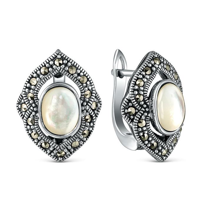 Совместные покупки Омск Ювелирные украшения и бижутерия Серьги — Серьги из чернёного серебра с перламутром и марказитами HR0335-MP-LK
