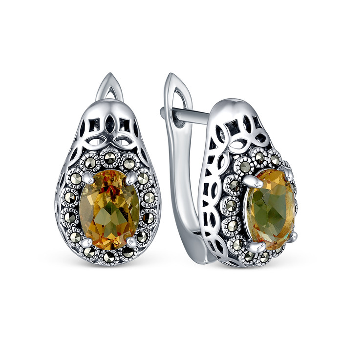 Совместные покупки Омск Ювелирные украшения и бижутерия Серьги — Серьги из чернёного серебра с султанитом и марказитами 925 пробы HE1661-ZN-LK