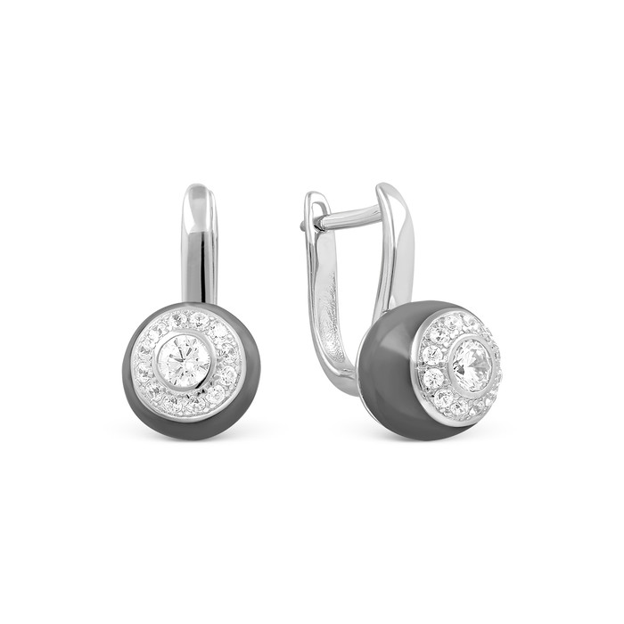 Совместные покупки Омск Ювелирные украшения и бижутерия Серьги — Серьги из родированного серебра с куб.цирконием и керамикой 925 пробы CTX-E076-3