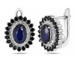 Серьги, сапфир корунд , шпинель нат., NKD-2207