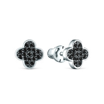 Серьги-пусеты из серебра с натуральной чёрной шпинелью родированные - Клевер, че
