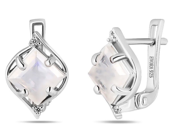 Серьги, арт.648357 Серебро Серебро 925, 3,76 гр., лунный камень