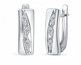 Серьги-пусеты из золочёного серебра с фианитами п6-981-1з233