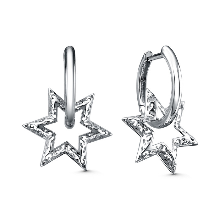 Совместные покупки Омск Ювелирные украшения и бижутерия Серьги — Серьги из серебра родированные - Звёзды (трансформеры, 2 в 1) 925 пробы С-4804-Р