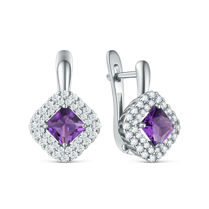 Совместные покупки Омск Ювелирные украшения и бижутерия Серьги — Серьги из серебра с аметистом и фианитами родированные С50083р401
