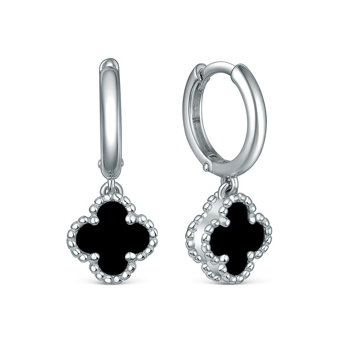 Серьги из серебра с чёрным агатом родированные - Клевер, четырёхлистник 2-029р44