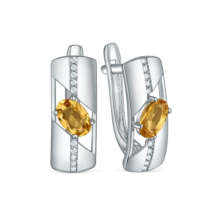 Совместные покупки Омск Ювелирные украшения и бижутерия Серьги — Серьги из серебра с цитрином и фианитами родированные 2-3906-001